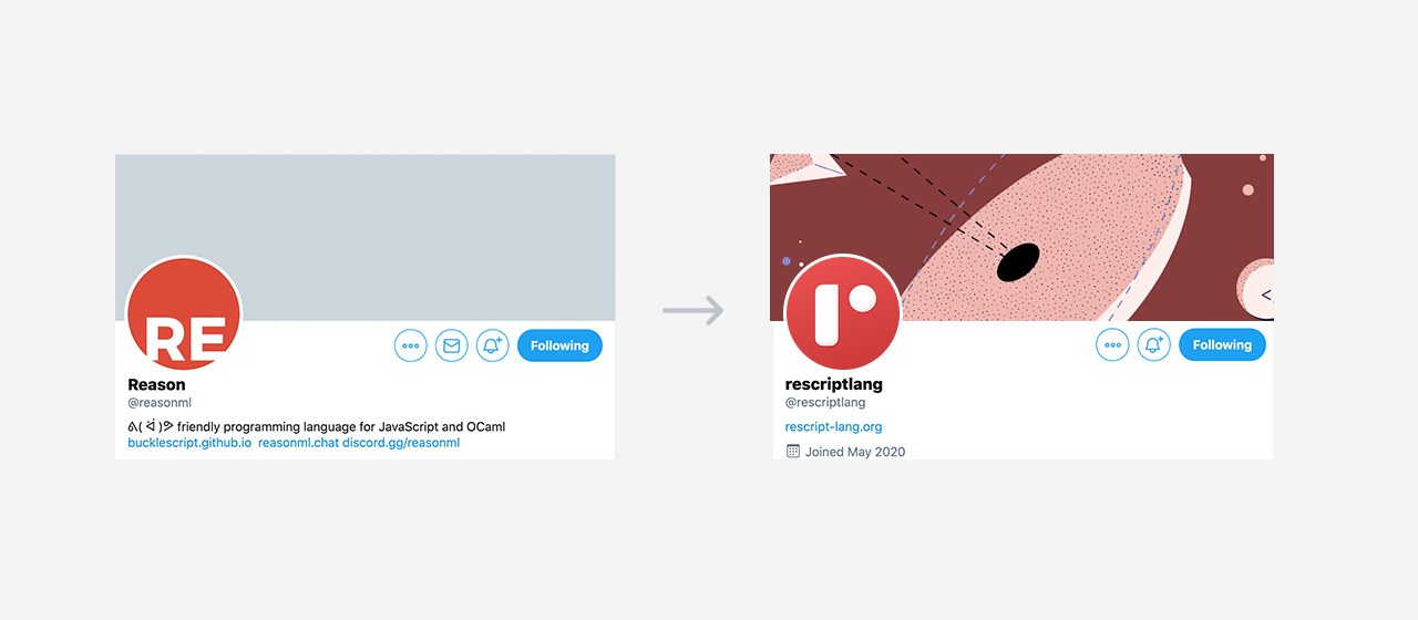 We'd like to position ReScript to be a community of product-first developers who care about the fit & finish of their work, while keeping an eye on the quality of their engineering. This interplay of design and engineering is a hard-to-achieve but beautifully worthwhile sweet spot that's frequently been missing in the programmer community; our vibrant logo is our renewed symbolic step toward this mission. Come along with us on our journey!